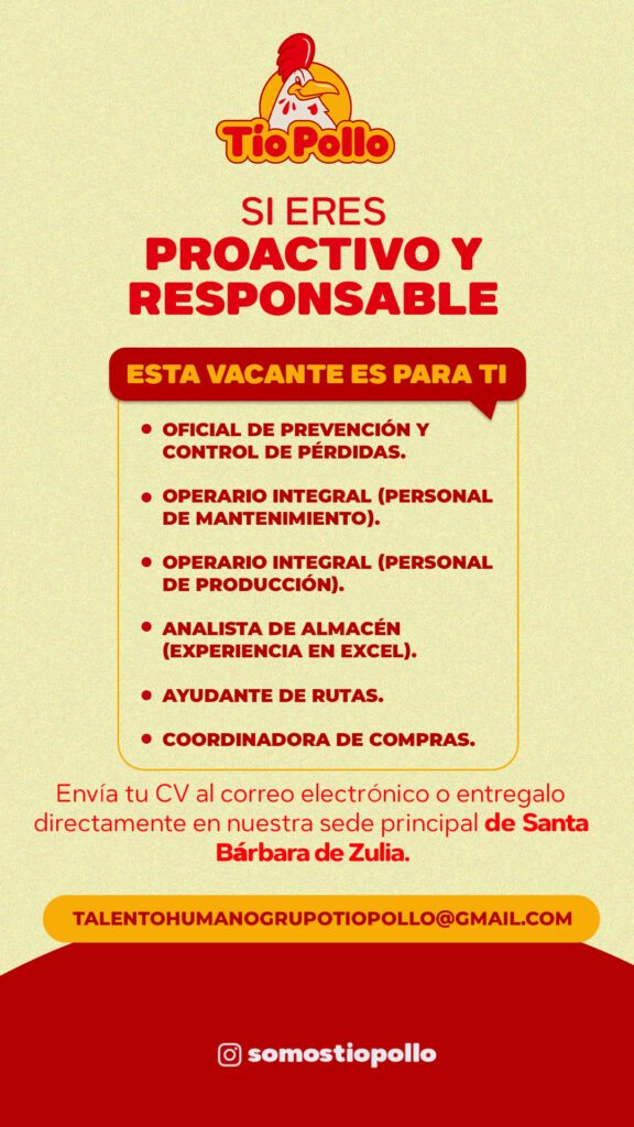 Nos mueve el trabajo bien hecho, el respeto mutuo y el deseo de ofrecer siempre lo mejor. En Tío Pollo, cada trabajador es parte clave de nuestro crecimiento… y del sabor que llevamos al corazón de los hogares venezolanos.